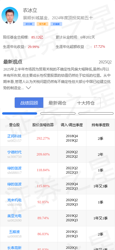 可在证星研究院详细查看农冰立战绩和分析师对基金持仓的增减仓公司的业绩预测。(更多特色估值数据尽在证星研究院)