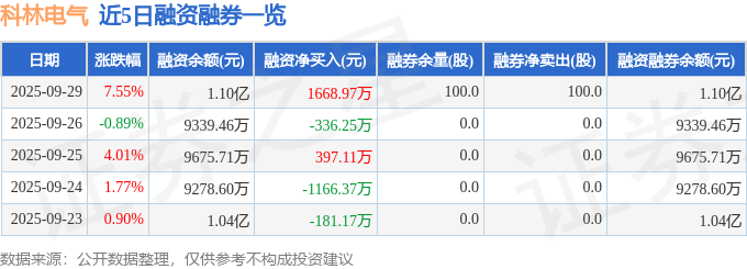科林电气融资融券信息显示,融资方面,当日融资买入5936.05万元,融资偿还4267.07万元,融资净买入1668.97万元。融券方面,融券卖出100.0股,融券偿还0.0股,融券余量100.0股,融券余额0.19万元。融资融券余额1.1亿元。