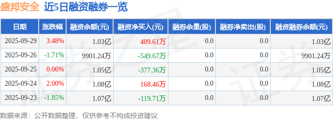盛邦安全融资融券信息显示,融资方面,当日融资买入901.75万元,融资偿还492.15万元,融资净买入409.61万元。融券方面,融券卖出0.0股,融券偿还0.0股,融券余量0.0股,融券余额0.0万元。融资融券余额1.03亿元。