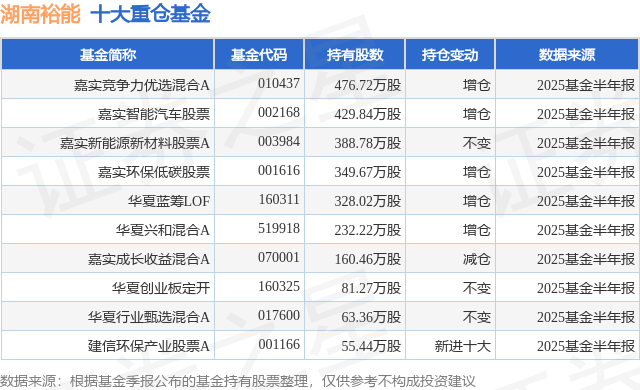 重仓湖南裕能的前十大公募基金请见下表: