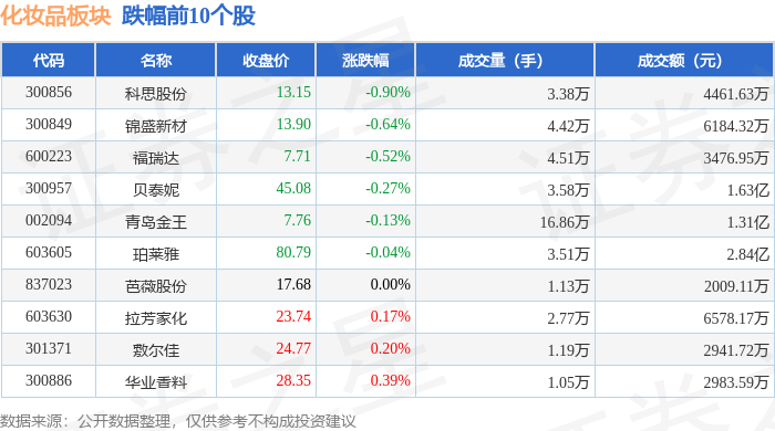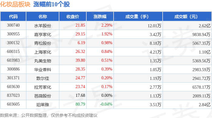 证券之星消息,9月30日化妆品板块较上一交易日上涨0.26%,水羊股份领涨。当日上证指数报收于3882.78,上涨0.52%。深证成指报收于13526.51,上涨0.35%。化妆品板块个股涨跌见下表: