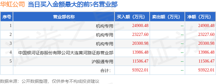 从龙虎榜公布的当日买卖数据来看,机构合计净买入6.84亿元,北向资金合计净卖出2534.43万元。陈小群、上塘路等知名游资榜上有名。(知名游资陈小群一般指中国银河证券股份有限公司大连黄河路证券营业部席位、知名游资上塘路一般指财通证券股份有限公司杭州体育场路证券营业部席位,根据市场资料整理,仅供参考)
