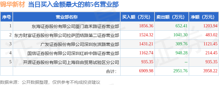 证券之星消息,沪深交易所2025年9月30日公布的交易公开信息显示,锦华新材(920015)因当日换手率达到20%的前5只股票登上龙虎榜。此次是近5个交易日内第3次上榜。