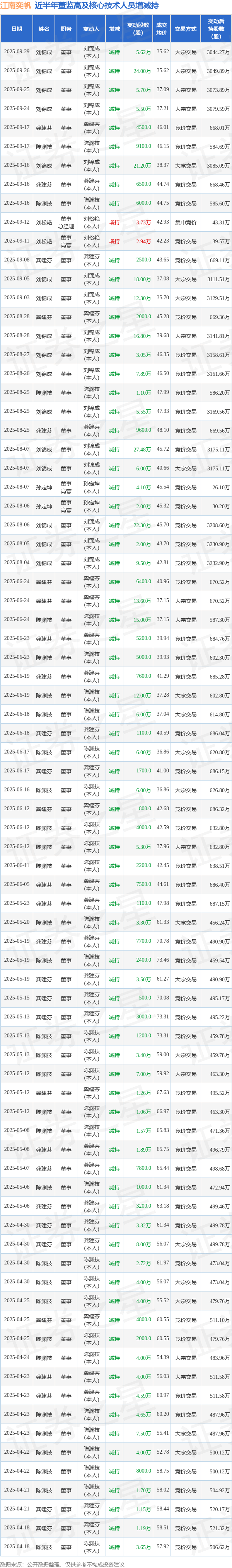 江南奕帆近半年内的董监高及核心技术人员增减持详情如下: