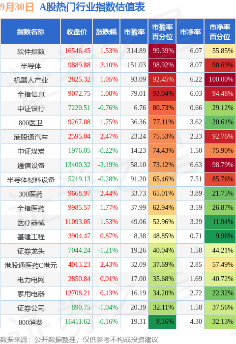 热门行业指数方面,软件指数的市盈率百分位较高,为99.39%。而800消费的市盈率百分位较低,为9.16%。