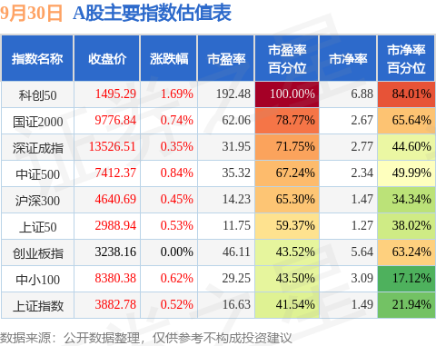 证券之星消息,9月30日A股收盘,上证综指指涨0.52%,报收3882.78点;深圳成指涨0.35%,报收13526.51点;创业板指涨0.0%,报收3238.16点。