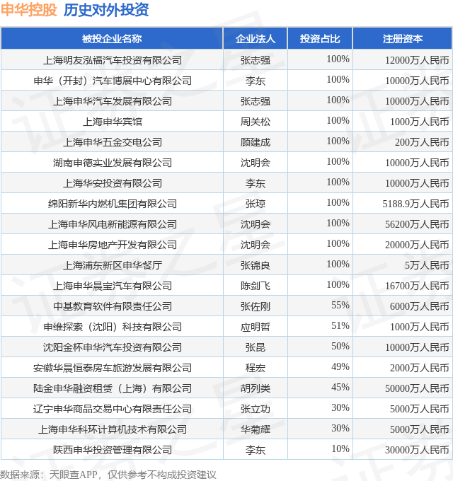 证券之星消息,根据天眼查APP显示,申华控股(600653.SH)新增一起对外投资事件,被投资公司为申维探索(沈阳)科技有限公司,法定代表人应明哲,投资占比为51%。该公司从事软件和信息技术服务业,注册资本为1000万人民币。目前,申华控股共存在对外投资23项,投资占比前20的项目见下表: