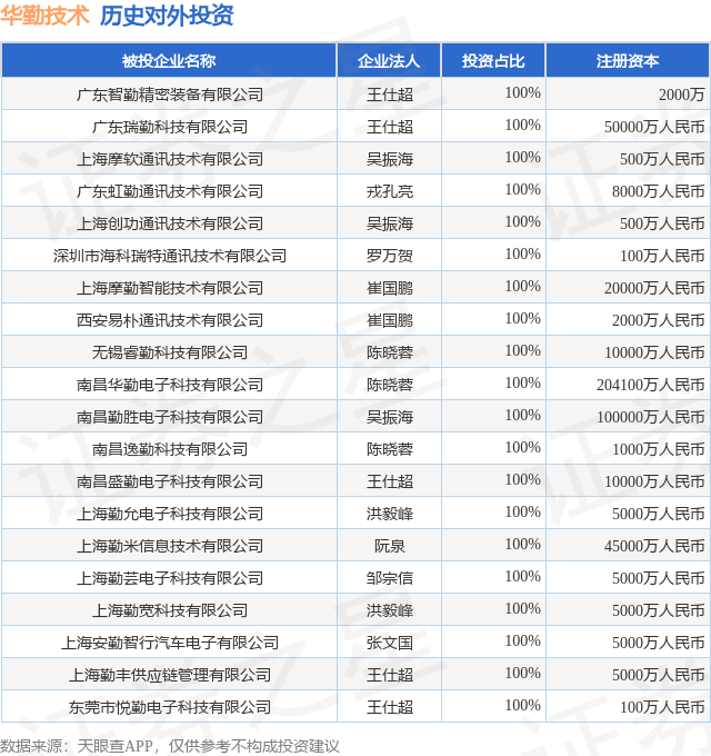 证券之星消息,根据天眼查APP显示,华勤技术(603296.SH)新增一起对外投资事件,被投资公司为广东智勤精密装备有限公司,法定代表人王仕超,投资占比为100%。该公司从事计算机、通信和其他电子设备制造业,注册资本为2000万。目前,华勤技术共存在对外投资24项,投资占比前20的项目见下表: