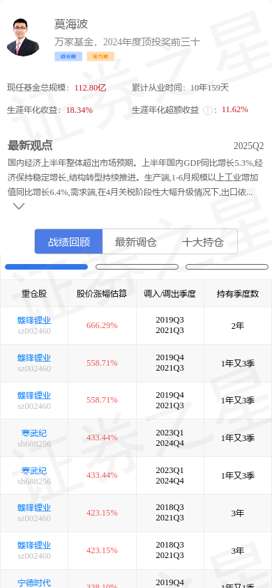 可在证星研究院详细查看莫海波战绩和分析师对基金持仓的增减仓公司的业绩预测。(更多特色估值数据尽在证星研究院)