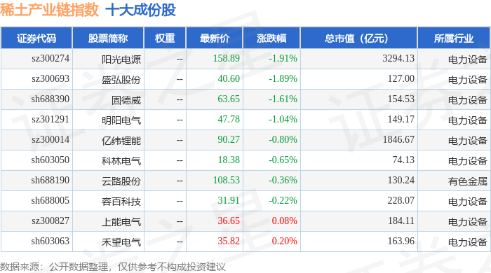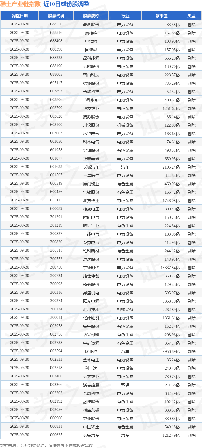 近10日内稀土产业链(989013)指数成份股做了调整,剔除了50只股票。