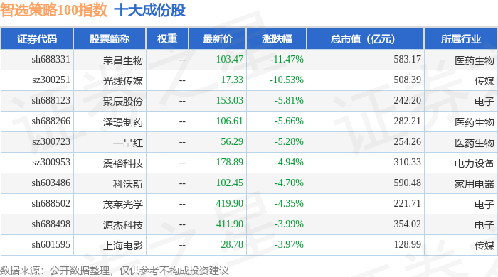 智选策略100(989015)指数十大成份股详情如下: