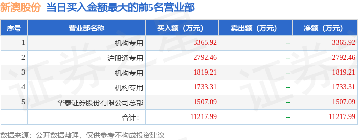 证券之星消息,沪深交易所2025年10月10日公布的交易公开信息显示,新澳股份(603889)因有价格涨跌幅限制的日收盘价格涨幅偏离值达到7%的前五只证券登上龙虎榜。此次是近5个交易日内第1次上榜。