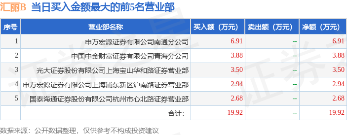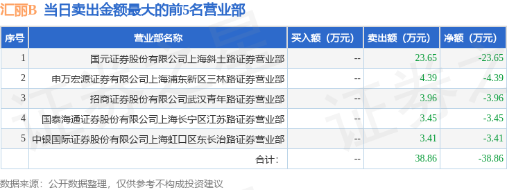 证券之星消息,沪深交易所2025年10月10日公布的交易公开信息显示,汇丽B(900939)因有价格涨跌幅限制的日收盘价格跌幅偏离值达到7%的前五只证券登上龙虎榜。此次是近5个交易日内第4次上榜。