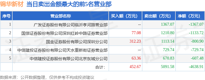 截至2025年10月10日收盘,锦华新材(920015)报收于48.09元,下跌4.49%,换手率25.61%,成交量7.95万手,成交额3.8亿元。