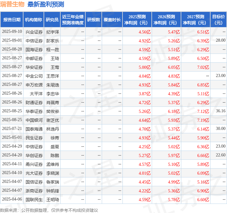 瑞普生物2025Q1归母净利润达1.16亿元(同比+32.45%)。