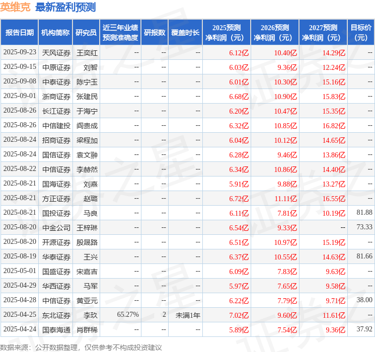 证券之星数据中心根据近三年发布的研报数据计算,东北证券李玖研究员团队对该股研究较为深入,近三年预测准确度均值为65.27%,其预测2025年度归属净利润为盈利7.02亿,根据现价换算的预测PE为83.62。