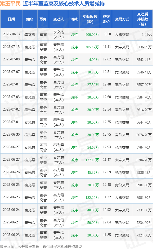 漱玉平民近半年内的董监高及核心技术人员增减持详情如下: