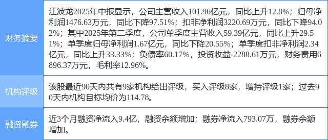 2025年8月26日,天风证券研究员潘暕,缪欣君,李泓依发布了对江波龙的研报《25Q2营收创历史新高,企业级+主控自研驱动高成长》,该研报对江波龙给出“买入”评级,认为其目标价为115.2元,现价已超分析师预估,涨幅达到57.66%。研报中预计2025/2026/2027年实现归母净利润4.82/16.09/20.76亿元,维持公司“买入”评级。证券之星数据中心根据近三年发布的研报数据计算,该研报作者对此股的盈利预测准确度为30.37%。