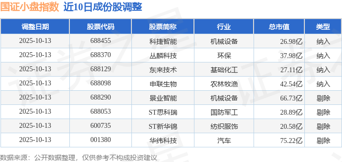 近10日内国证小盘(980202)指数成份股做了调整,新纳入了4只股票,剔除了4只股票。