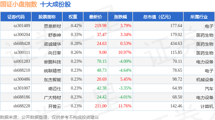 国证小盘(980202)指数十大成份股详情如下: