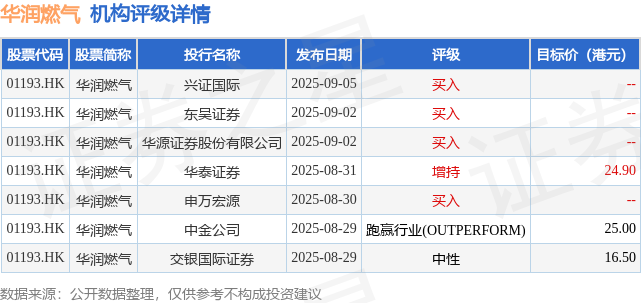 投行对该股的评级以买入为主,近90天内共有4家投行给出买入评级,近90天的目标均价为22.13港元。兴证国际最新一份研报给予华润燃气买入评级。