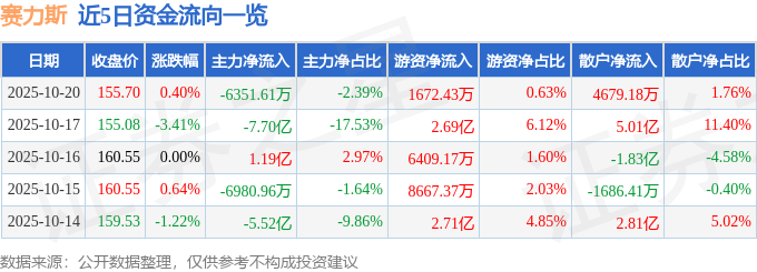 证券之星消息,截至2025年10月20日收盘,赛力斯(601127)报收于155.7元,上涨0.4%,换手率1.13%,成交量17.02万手,成交额26.58亿元。