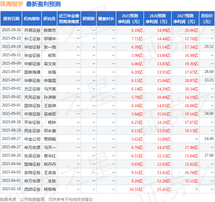以下是详细的盈利预测信息: