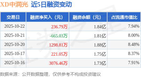 证券之星消息,10月22日,XD中润光(688307)融资买入1904.59万元,融资偿还1667.8万元,融资净买入236.79万元,融资余额1.84亿元,近20个交易日中有12个交易日出现融资净买入。