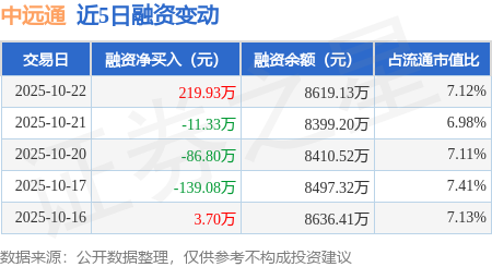 证券之星消息,10月22日,中远通(301516)融资买入592.48万元,融资偿还372.54万元,融资净买入219.93万元,融资余额8619.13万元。