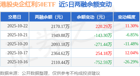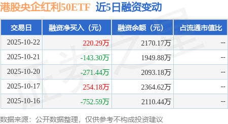 证券之星消息,10月22日,港股央企红利50ETF(520990)融资买入572.56万元,融资偿还352.27万元,融资净买入220.29万元,融资余额2170.17万元。