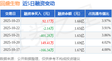 证券之星消息,10月23日,回盛生物(300871)融资买入656.25万元,融资偿还564.08万元,融资净买入92.17万元,融资余额1.66亿元。