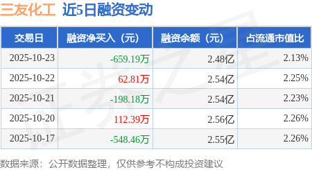 证券之星消息,10月23日,三友化工(600409)融资买入1724.74万元,融资偿还2383.92万元,融资净卖出659.19万元,融资余额2.48亿元。