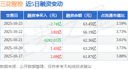 证券之星消息,10月23日,三花智控(002050)融资买入13.82亿元,融资偿还16.56亿元,融资净卖出2.74亿元,融资余额63.45亿元,近20个交易日中有12个交易日出现融资净买入。
