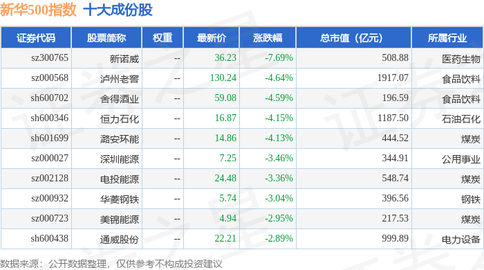 证券之星消息,10月24日,新华500(989001)指数报收于5140.99点,涨1.28%,成交7543.76亿元,换手率0.79%。当日该指数成份股中,上涨的有276家,江波龙以16.73%的涨幅领涨,下跌的有212家,新诺威以7.69%的跌幅领跌。