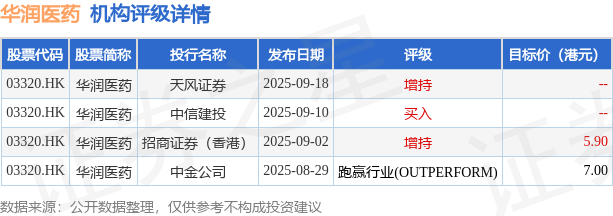截至2025年10月24日收盘,华润医药(03320.HK)报收于4.89港元,下跌0.41%,成交量388.41万股,成交额1897.17万港元。投行对该股的评级以增持为主,近90天内共有2家投行给出增持评级,近90天的目标均价为6.45港元。天风证券最新一份研报给予华润医药增持评级。