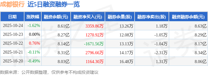 证券之星消息,截至2025年10月24日收盘,成都银行(601838)报收于18.24元,下跌1.62%,换手率0.52%,成交量22.02万手,成交额4.04亿元。