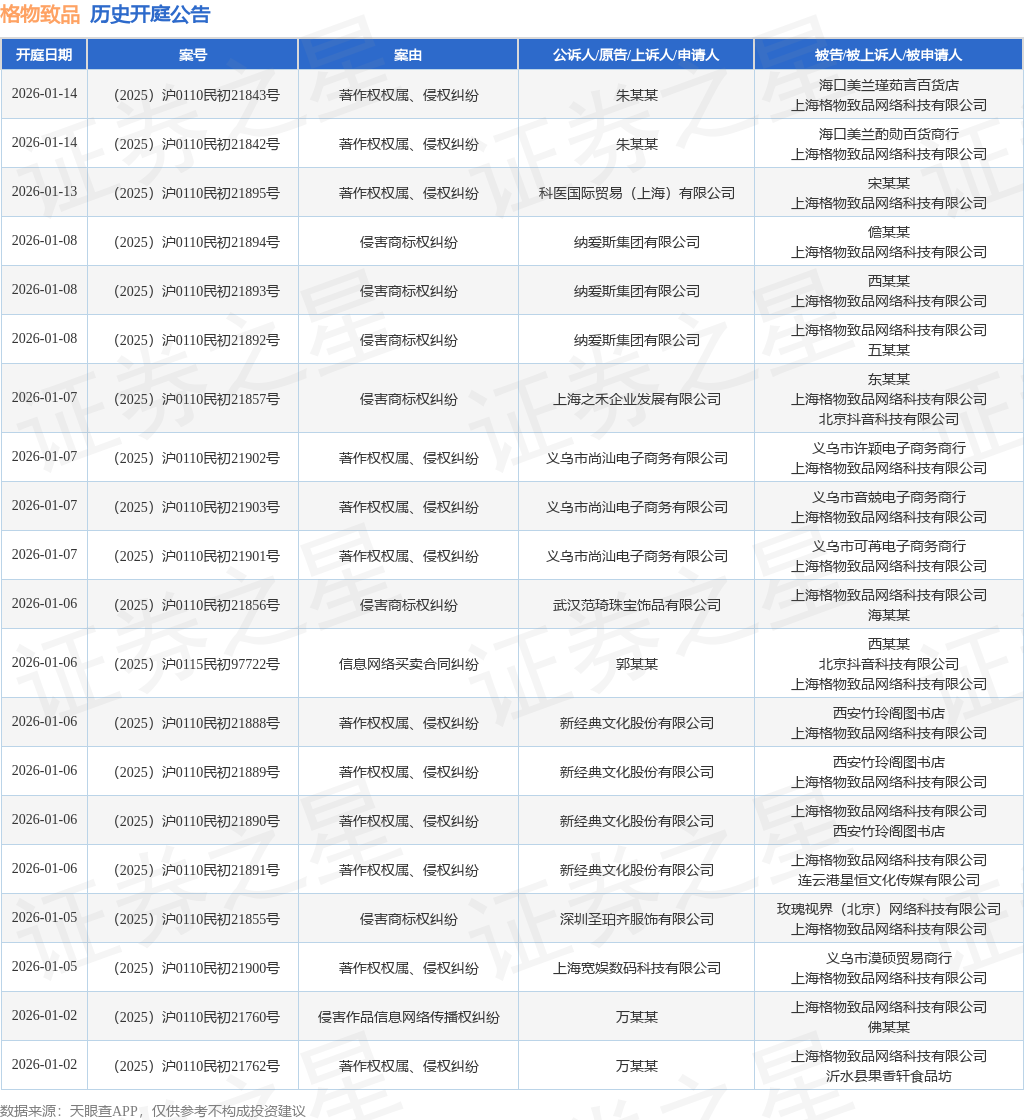 证券之星消息,根据天眼查APP显示,近日公布了一则上海格物致品网络科技有限公司作为被告/被上诉人的开庭公告,详细内容如下: