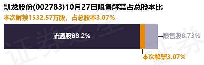 证券之星消息,根据市场公开信息整理,凯龙股份(002783)于10月27日将有1532.57万股限售股份解禁,为公司定向增发机构配售股份,占公司总股本3.07%。(本次数据根据历史公告整理得出,实际情况以上市公司最新公告为准)最近一年内,该股累计解禁9560.91万股,占总股本的19.15%。本次解禁后,公司还有4361.13万股限售股份,占总股本8.73%。具体如下图所示: