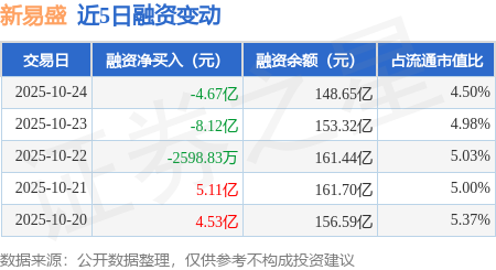 证券之星消息,10月24日,新易盛(300502)融资买入38.25亿元,融资偿还42.92亿元,融资净卖出4.67亿元,融资余额148.65亿元。