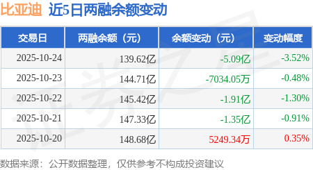 证券之星消息,10月24日,比亚迪(002594)融资买入2.87亿元,融资偿还7.97亿元,融资净卖出5.09亿元,融资余额138.93亿元。
