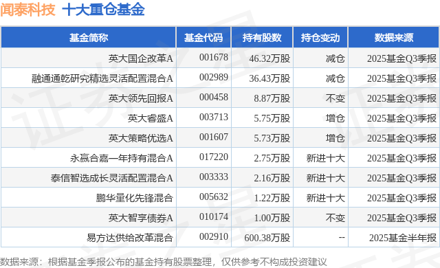 根据2025基金Q3季报公募基金重仓股数据,重仓该股的公募基金共9家,其中持有数量最多的公募基金为英大基金的英大国企改革A。英大国企改革A目前规模为5.86亿元,最新净值2.0856(10月24日),较上一交易日上涨2.8%,近一年上涨33.66%。该公募基金现任基金经理为张媛。张媛在任的基金产品包括:英大睿盛A,管理时间为2018年1月23日至今,期间收益率为160.13%;英大策略优选A,管理时间为2019年3月11日至今,期间收益率为147.93%;英大中证ESG120策略指数A,管理时间为2022年3月15日至今,期间收益率为20.31%。