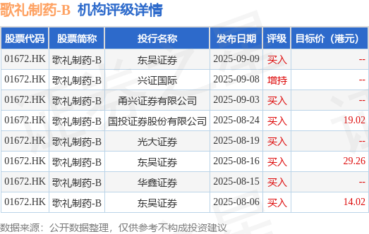 截至2025年10月27日收盘,歌礼制药-B(01672.HK)报收于9.61港元,上涨5.37%,成交量364.8万股,成交额3549.92万港元。投行对该股的评级以买入为主,近90天内共有7家投行给出买入评级,近90天的目标均价为20.77港元。东吴证券最新一份研报给予歌礼制药-B买入评级。