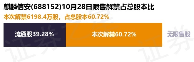 证券之星消息,根据市场公开信息整理,麒麟信安(688152)于10月28日将有6198.4万股限售股份解禁,为公司首发原股东限售股份,占公司总股本60.72%。(本次数据根据历史公告整理得出,实际情况以上市公司最新公告为准)最近一年内,该股累计解禁86.51万股,占总股本的0.85%。本次解禁后,公司已无限售股份。具体如下图所示: