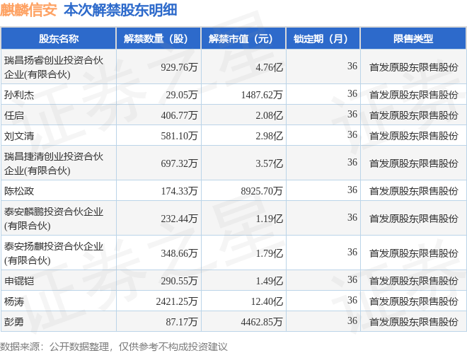 来源:证星限售解禁