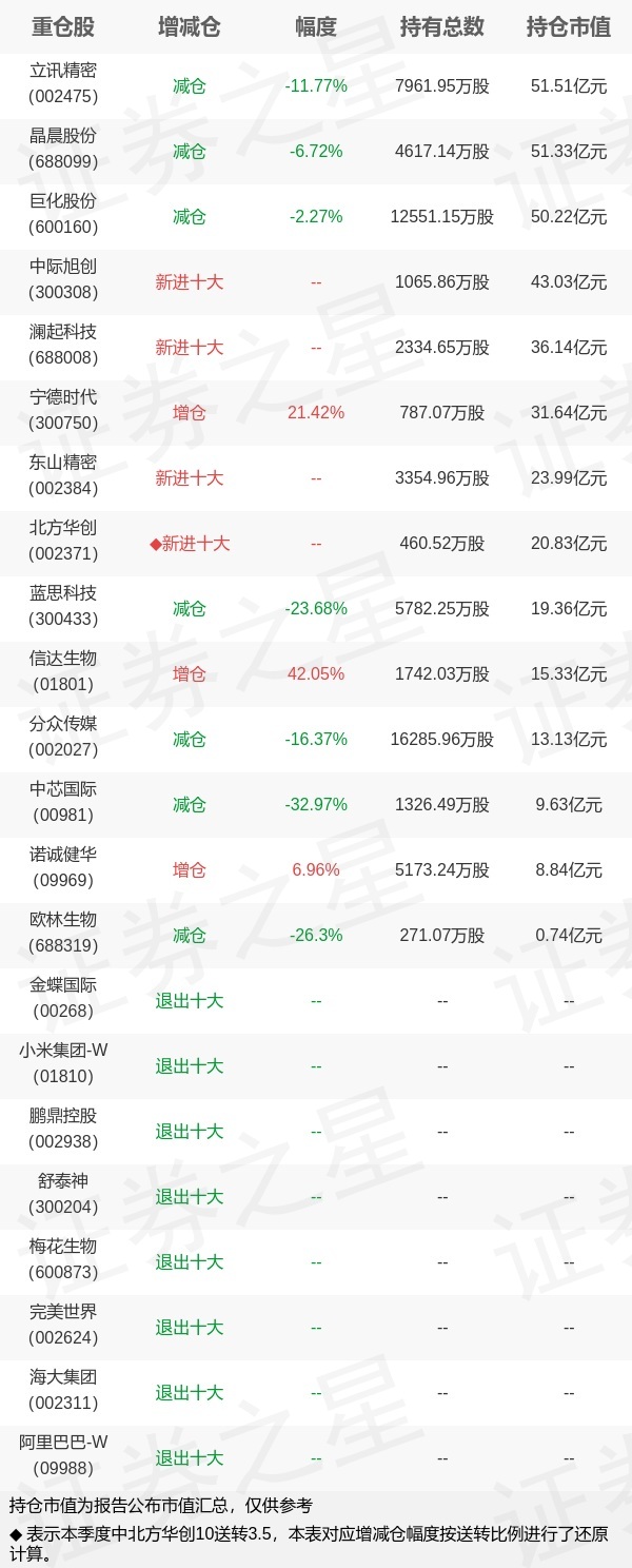 证券之星消息,10月28日兴证全球基金谢治宇旗下基金公布2025年三季报,综合其旗下各基金报告,港股持仓比重大幅减少,中芯国际等被减持;另外,新能源汽车行业板块个股更受其关注,与上季度相比,宁德时代等被增持,北方华创、东山精密等新入十大重仓;目前其旗下基金综合持仓排名前三个股为立讯精密、晶晨股份、巨化股份。