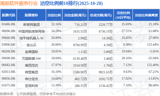 从沽空比例来看,新意网集团、中国民航信息网络、地平线机器人-W沽空比例位居行业前三,分别为32.16%、24.28%、20.89%。
