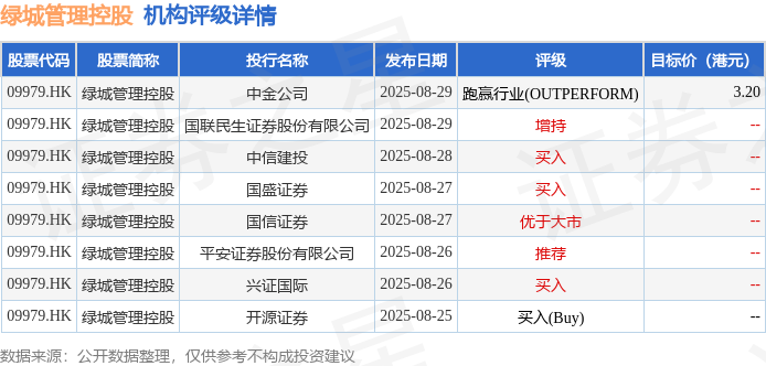 截至2025年10月28日收盘,绿城管理控股(09979.HK)报收于3.05港元,下跌0.65%,成交量149.4万股,成交额456.68万港元。投行对该股的评级以买入为主,近90天内共有3家投行给出买入评级,近90天的目标均价为3.2港元。中金公司最新一份研报给予绿城管理控股跑赢行业(OUTPERFORM)评级,目标价3.2港元。