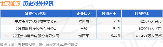 证券之星消息,根据天眼查APP显示,世茂能源(605028.SH)新增一起对外投资事件,被投资公司为浙江新中港热电股份有限公司,法定代表人谢百军,投资占比为0.22%。该公司从事电力、热力生产和供应业,注册资本为40045.1万人民币。目前,世茂能源共存在对外投资3项,详见下表: