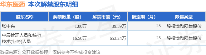 证券之星消息,根据市场公开信息整理,华东医药(000963)于10月29日将有17.5万股限售股份解禁,为公司股权激励限售股份,占公司总股本0.01%。(本次数据根据历史公告整理得出,实际情况以上市公司最新公告为准)最近一年内,该股累计解禁106.37万股,占总股本的0.06%。本次解禁后,公司还有191.08万股限售股份,占总股本0.11%。具体如下图所示: