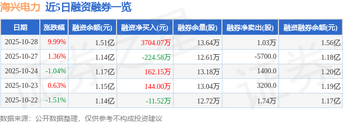 海兴电力融资融券信息显示,融资方面,当日融资买入9094.52万元,融资偿还5390.45万元,融资净买入3704.07万元。融券方面,融券卖出1.07万股,融券偿还400.0股,融券余量13.64万股,融券余额435.39万元。融资融券余额1.56亿元。
